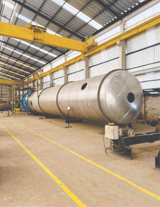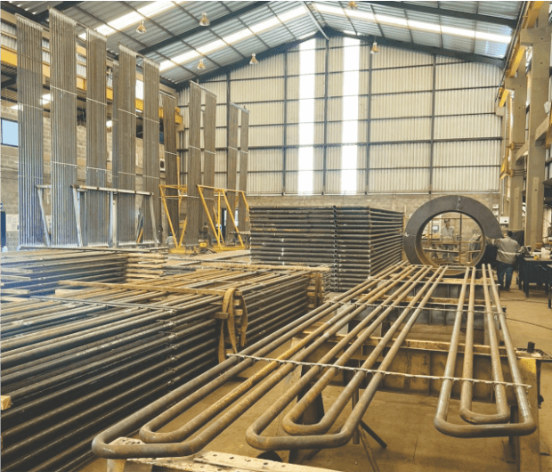 Fabricamos equipamentos do sistema de destilação como colunas de destilação, evaporadores, balão condensadores, partes de caldeiras de alta pressão, coletores de vapor, dutos de exaustão, paredes d’ água, economizadores, super aquecedores para o setor mineroquímico, trocadores de calor, separadores e evaporadores de ácido fosfórico, torres de ácido sulfúrico dentre outros, no geral também atendemos estruturas metálicas, guarda-corpos, tubulações e spools para linhas de vapor (P22) e vasos de pressão.