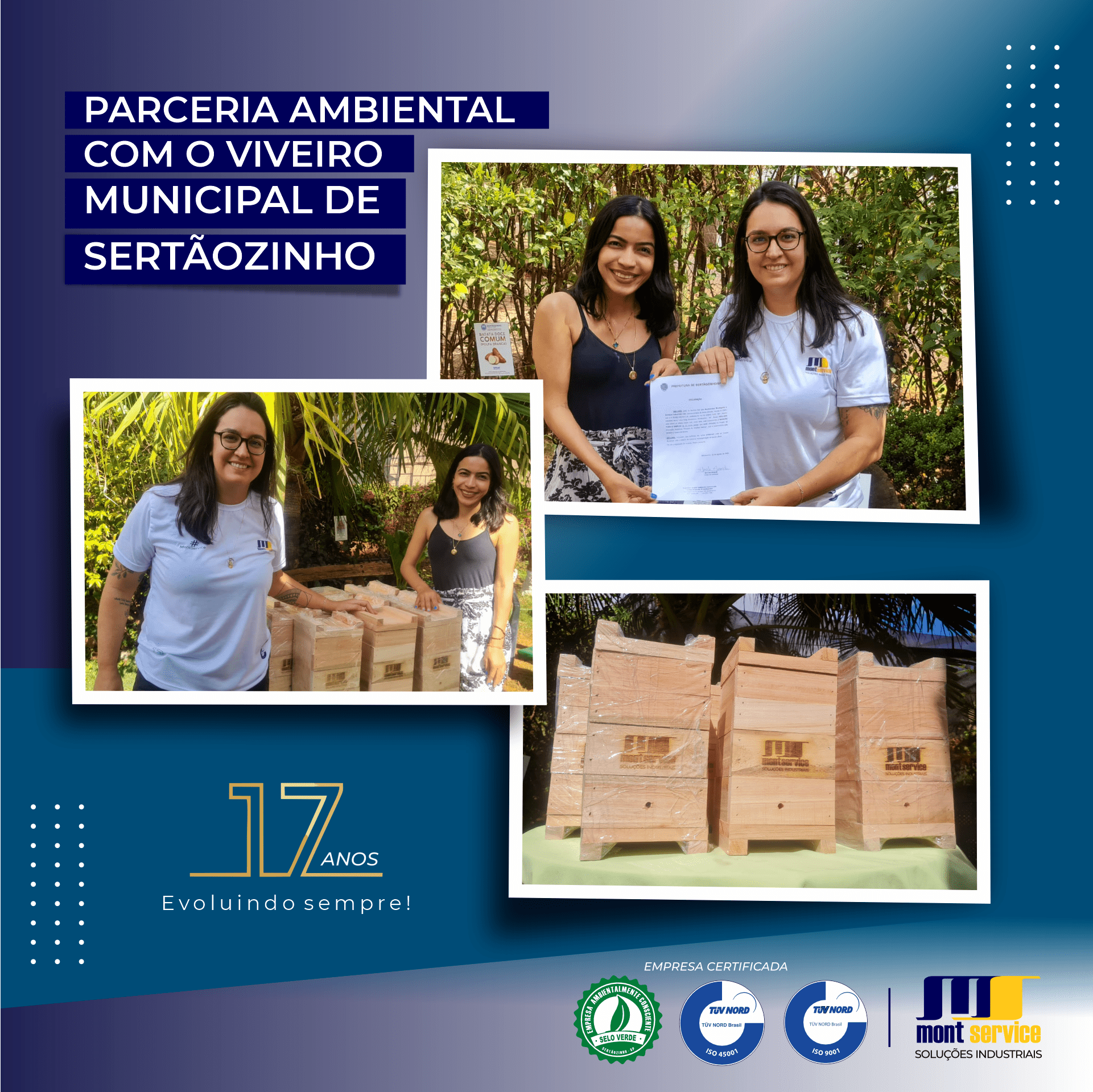 O engajamento com o meio ambiente está no dia a dia da #montservice Dedicando a nossa parceria com o Viveiro Municipal de Sertãozinho.SP, assumindo um compromisso em ajudá-los no quer for necessário. Já de início, conseguimos realizar a doação de caixas de madeira preparadas para moradia e reprodução de abelhas sem…